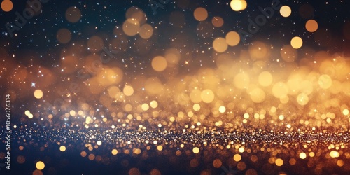 Fototapeta premium Dark golden glittering background with sparkling bokeh lights, ideal for...