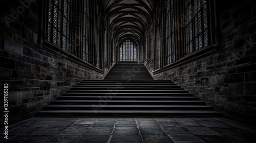 Fototapeta premium Dark Gothic Staircase: A Mystical Descent into History