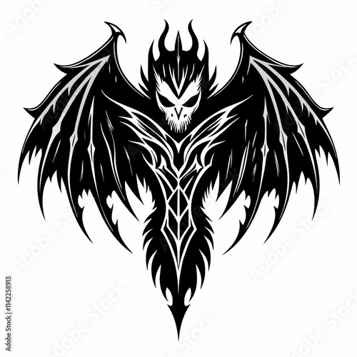 Fototapeta premium Dark Gothic Winged Demon Art with Tribal Design