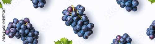 Fototapeta premium Dark Grapes Pattern on White, Food , Fruits
