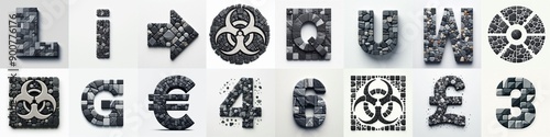Obraz premium Dark gray and red stones Tiling Lettering Typeface. AI generated illustration