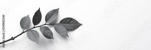 © methinee, Fototapeta premium Dark gray aspen branch isolated on white paper, white paper, gray branch