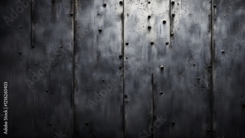 © Sutarto Stock, Obraz premium Dark gray distressed metal texture background with rivets.