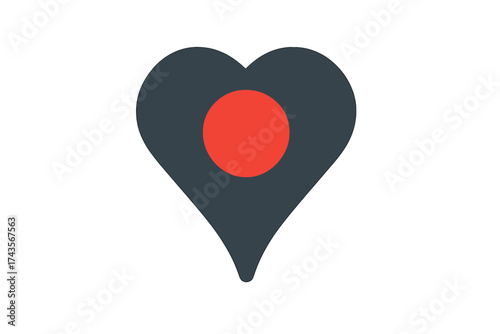 © icon_art, Fototapeta premium Dark gray heart-shaped map pointer icon with a red circle marking a favorite location