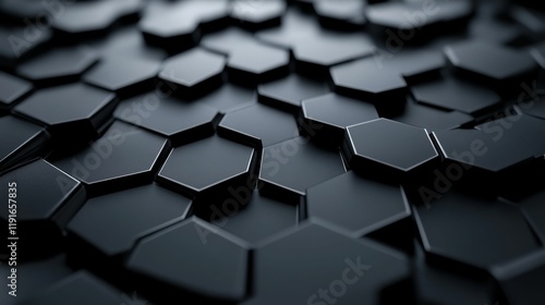 © Murda, Obraz premium Dark gray hexagonal shapes, textured surface.