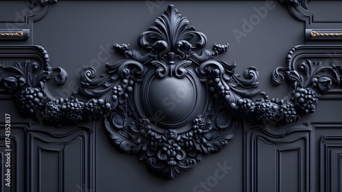 © PANGERANDESIGN, Obraz premium Dark gray ornate panel with rococo design.