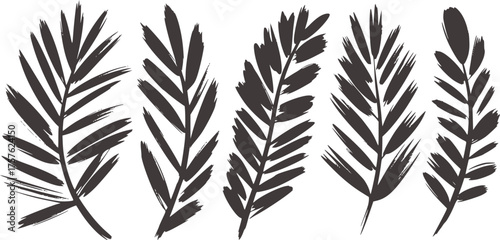© Musfiqur, Naklejka premium Dark gray palm fronds painted brush strokes leaves foliage