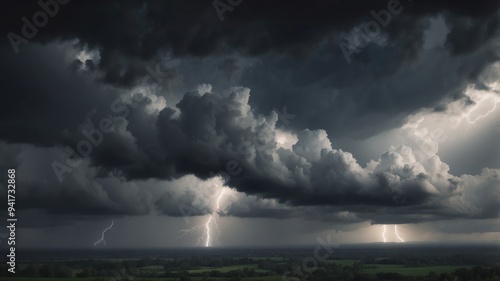 © DEER FLUFFY, Fototapeta premium Dark gray sky with clouds and thunderstorm.