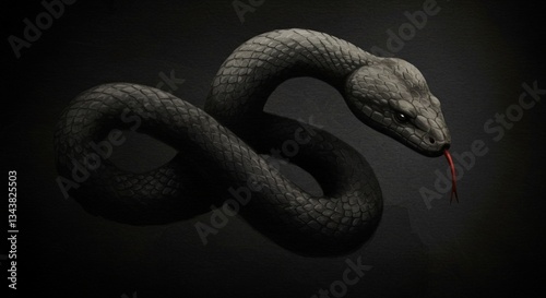 Obraz premium Dark Gray Snake Reptile Coiled Scales Close up Black Background Wildlife...