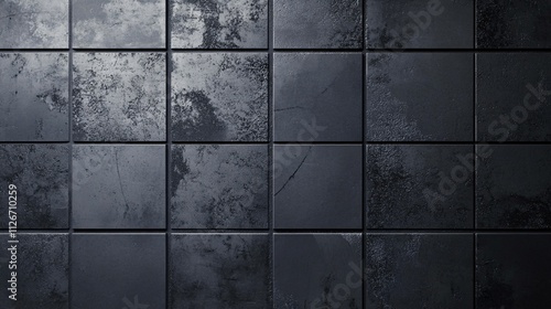 © Koplexs-Stock, Naklejka premium Dark Gray Square Tiles Textured Wall