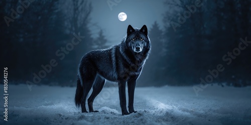 © The 2R Artificiality, Obraz premium Dark gray wolf in a natural setting, emphasizing wilderness preservation efforts