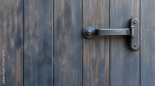 Fototapeta premium Dark gray wooden door with metal handle and latch. Close up. Background is...