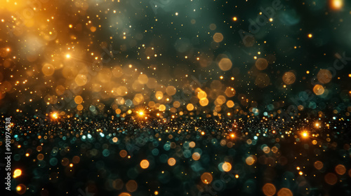© lali, Fototapeta premium Dark green and gold Abstract background and bokeh on New Year's Eve