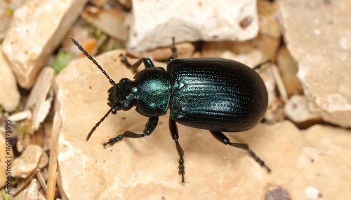 © Muldiawan, Naklejka premium Dark green beetle on rocks