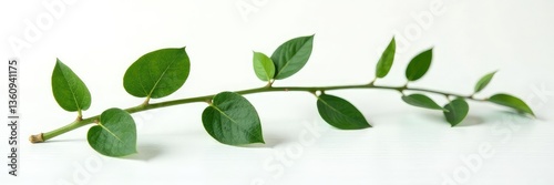 Obraz premium Dark green branch isolated on white background with subtle wood grain...