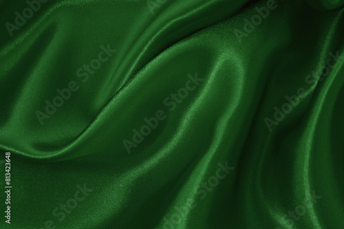 Fototapeta premium Dark green fabric cloth texture for background and design art work, beautiful crumpled pattern of silk or linen.