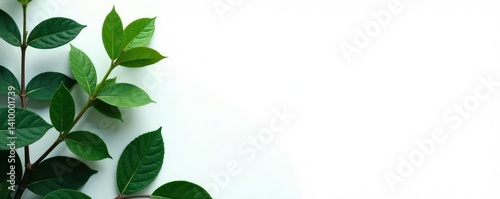 © Supharak wonginyoo, Fototapeta premium Dark green foliage against pure white background, isolation, botanical, simplicity