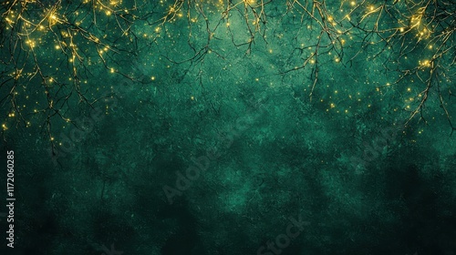 Obraz premium Dark green forest ambiance with subtle golden highlights on branches.