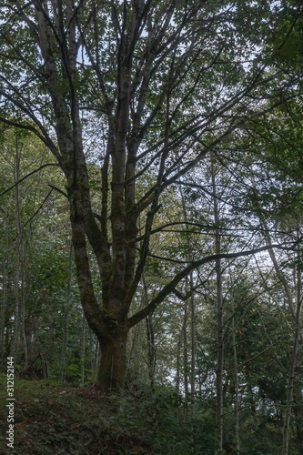 Fototapeta premium dark green forest covered in moss and ferns