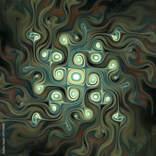 © Fernando Batista, Naklejka premium Dark green fractal flower, digital artwork