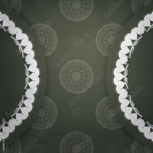 Obraz premium Dark green greeting card with vintage white ornament for your congratulations.