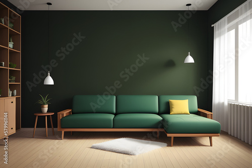 © Floor, Fototapeta premium Dark green home interior with old retro furniture, 3d render