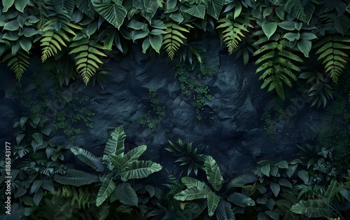Fototapeta premium Dark Green Jungle Wall with Ferns