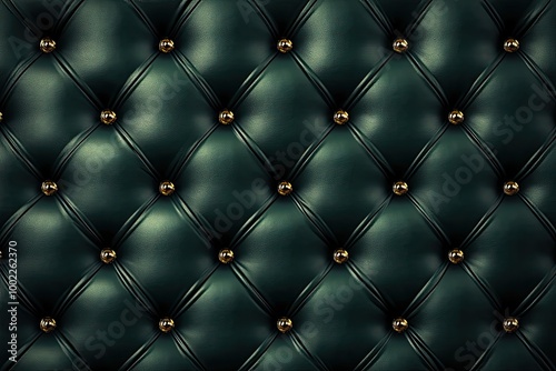 © SY, Naklejka premium Dark green leather upholstery with buttons. Perfect for creating backgrounds for elegant designs.
