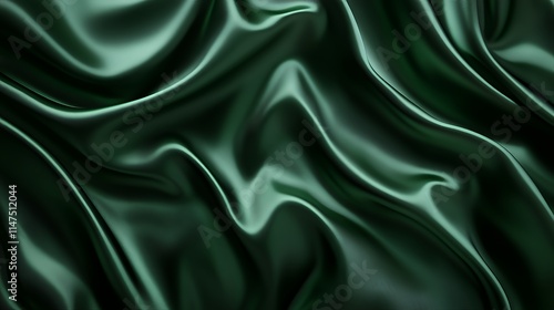 Fototapeta premium Dark Green Satin Fabric Draped Luxuriously