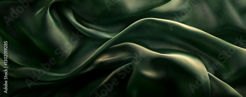 © SemangArt, Obraz premium Dark green silk fabric folds. Texture background