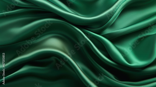 Fototapeta premium Dark green silk texture with soft waves