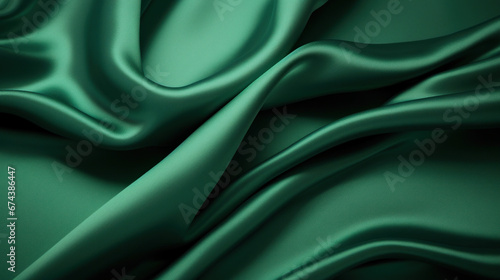 © tashechka, Obraz premium Dark green silk texture with soft waves
