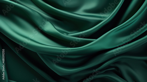 © tashechka, Obraz premium Dark green silk texture with soft waves