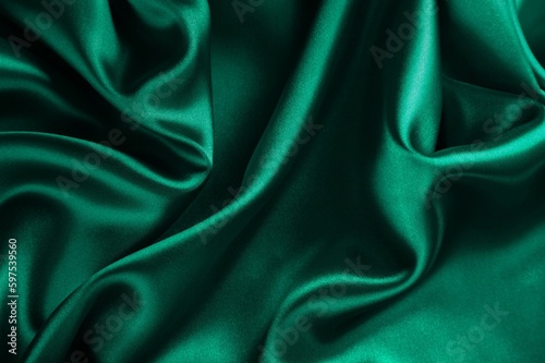 © BillionPhotos.com, Obraz premium Dark green soft silk satin fabric.