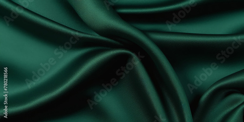 © Nice Seven, Fototapeta premium Dark green velvet fabric texture background, dark emerald cloth material for fashion design, green silk satin,
