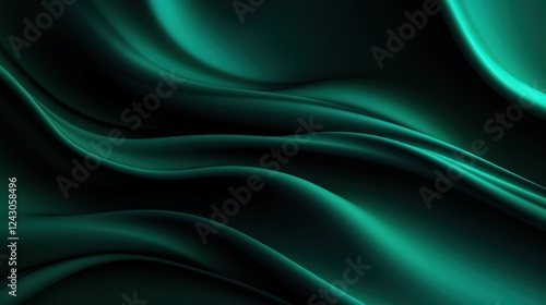 © Nice Seven, Obraz premium Dark Green Waves of Silk Texture with Smooth Flowing Curves and Elegant Shades for Background and Design Use