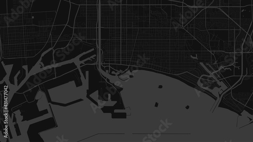 © Kostiantyn, Fototapeta premium Dark grey and black Long Beach city area vector background map, streets and water cartography illustration.