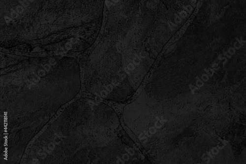 © torsakarin, Naklejka premium Dark grey black slate background or texture. Black granite slabs background