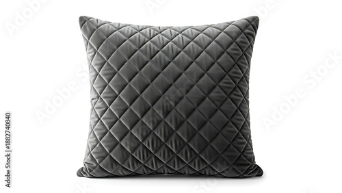 © Usman, Fototapeta premium Dark Grey Quilted Velvet Square Pillow Isolated on White Background - Elegant Diamond Pattern Decorative Cushion for Modern Interior Design.