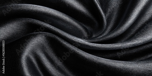 Fototapeta premium Dark grey silk or satin fabric draped in swirling folds