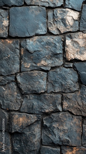 © Crafted, Obraz premium Dark grey stone wall texture, rough surface, irregular shapes, close-up view.