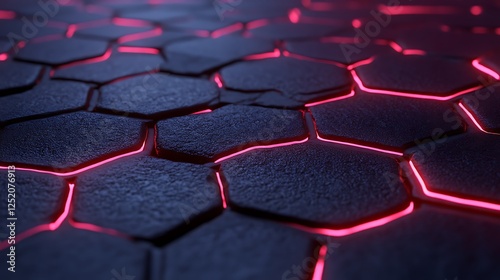Obraz premium Dark Hexagonal Surface With Red Neon Lighting