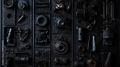 Obraz premium dark industrial gothic album abstract art, lot of black colors, darkest of...