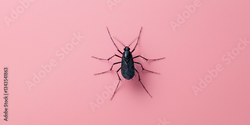 © Supithcha Mani, Fototapeta premium Dark Insect on Pink Surface Artistic Presentation Revealing Nature s Intricacies and Textural Details