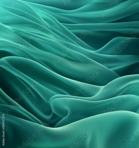 © Halal Vision Studio, Obraz premium Dark jade green satin fabric background. Soft, flowing waves with shimmering highlights and gradient shadow effects. Elegant blank template.