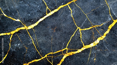 © Biggy, Obraz premium Dark marble surface with gold veins; close up, background abstract, for interior design or art use