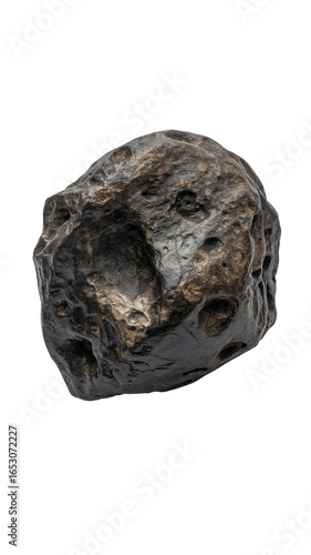 © Thanh, Obraz premium Dark Meteorite with Unique Texture on White Background