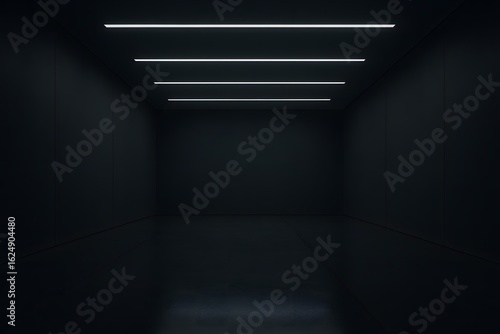 © Ai Art, Obraz premium Dark modern hallway with linear led lighting