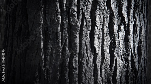 Obraz premium Dark Monochrome Tree Bark Texture Closeup Photography