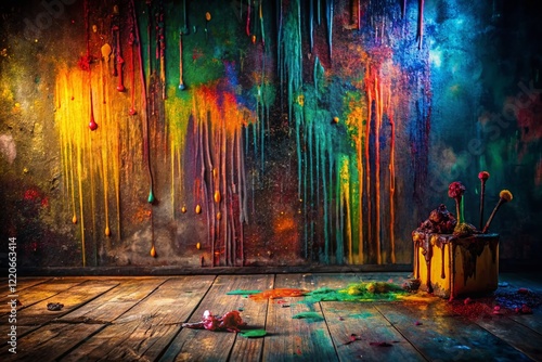 © Man888, Obraz premium Dark Moody Artistic Paint Splatter Background with Copy Space for Text and Design - Low Light Photography